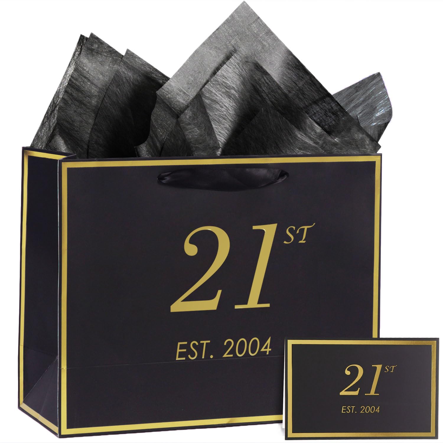 The gold “21ST EST 2004” lettering looks even better in person. The black background gives it a really sleek vibe, and the paper feels way sturdier than most gift bags.
