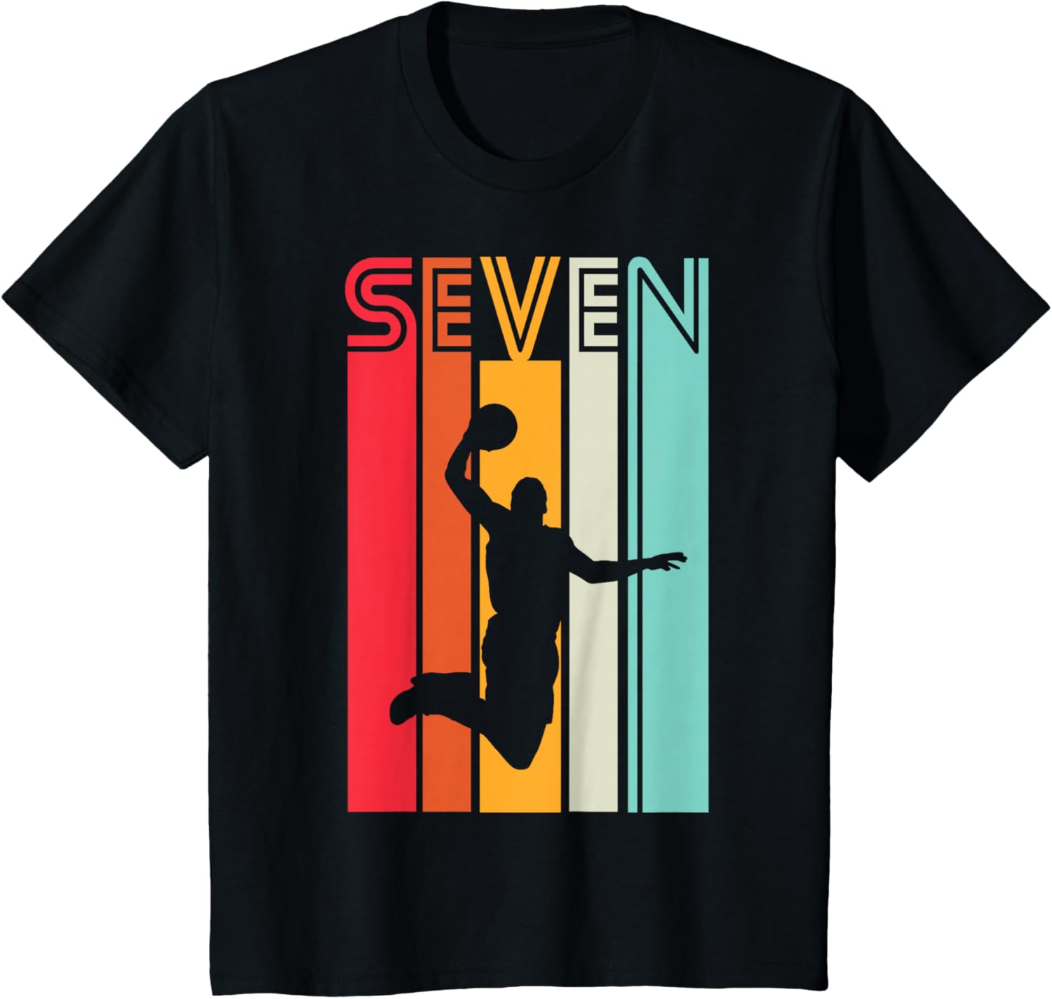 This basketball-themed birthday shirt is perfect for young fans turning seven. It lets them show their love for the sport in style.