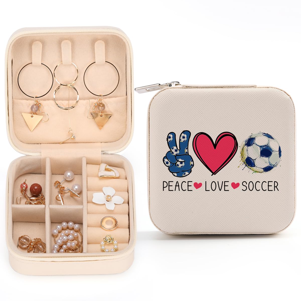It actually holds more than you’d expect. Lip balm, hair ties, snacks, even a charger—no problem. The soccer print looks sharp and grown-up, not cheap or childish.