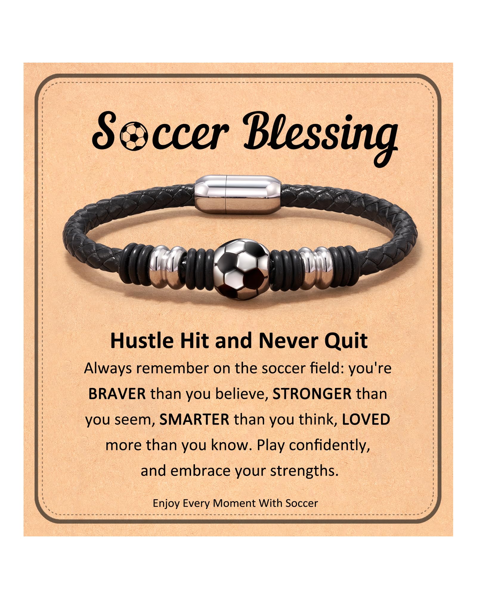 This leather soccer bracelet really stands out—stylish, tough, and just the right amount of sporty for young fans.