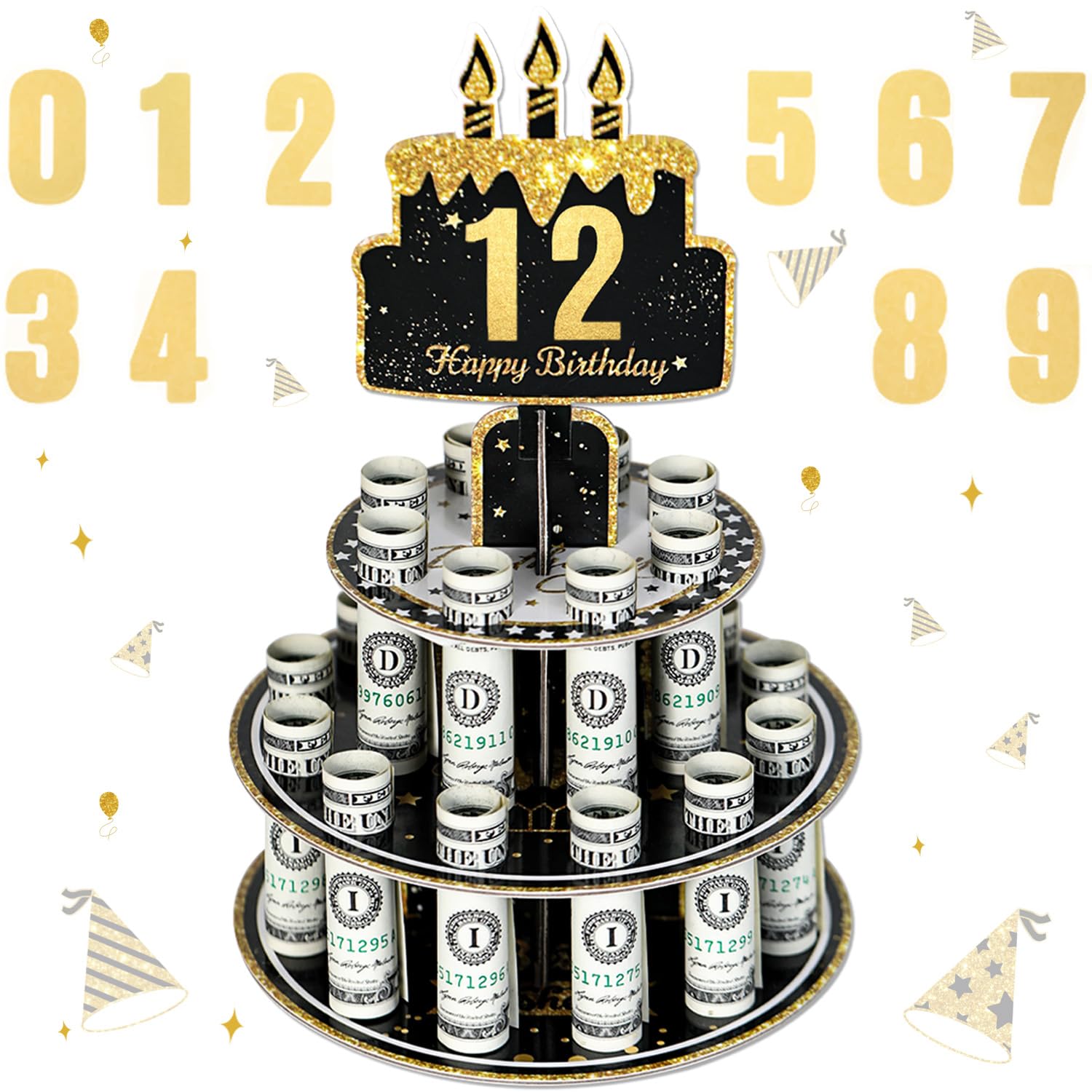 - Holds five rolled bills and looks great on a party table